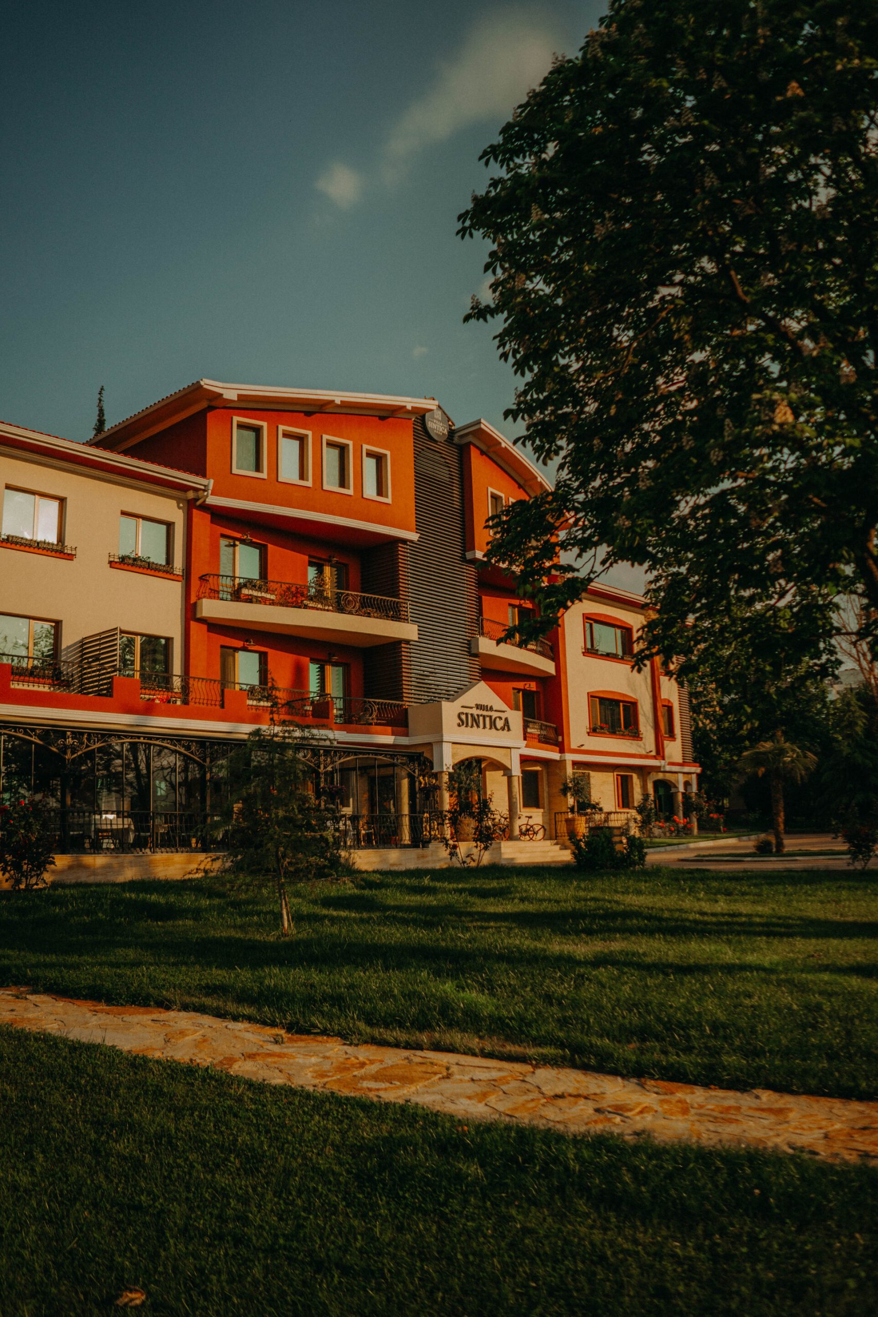 Villa Sintica е разположена на 2 километра от центъра на Сандански и разполага с 23 стаи и 3 апартамента, винарна, ресторант, уелнес център, открит басейн, който работи от месец май до месец септември, високо оборудвана конферентна зала, охраняем паркинг и всички удобства за почивка с деца.